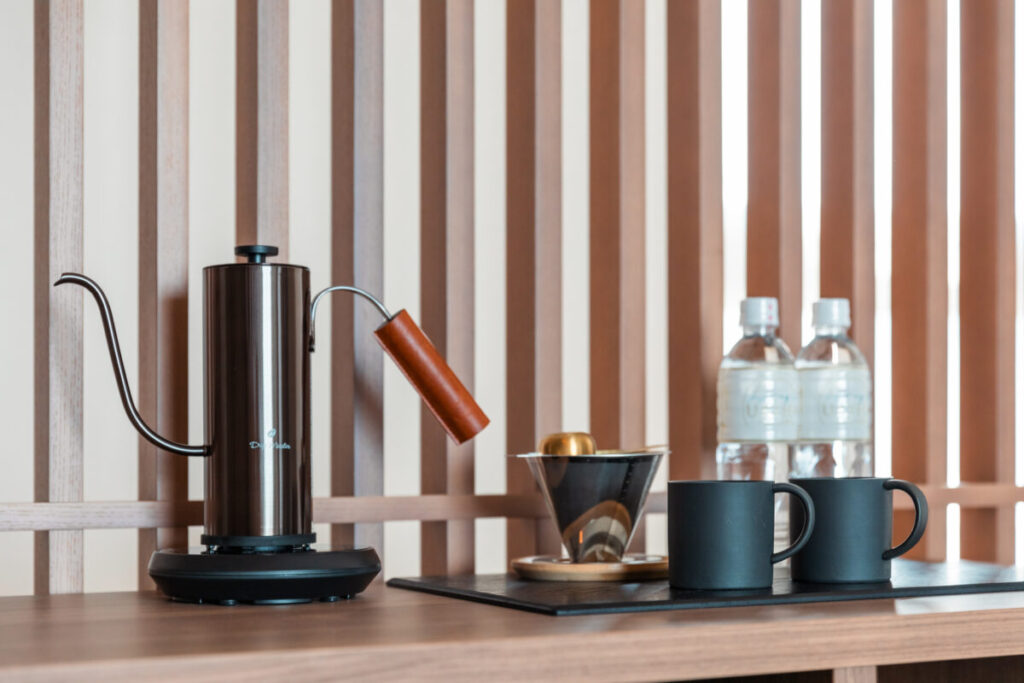 お部屋でドリップコーヒー体験。豆を挽く香りに包まれながら、ゆったり女子トーク。